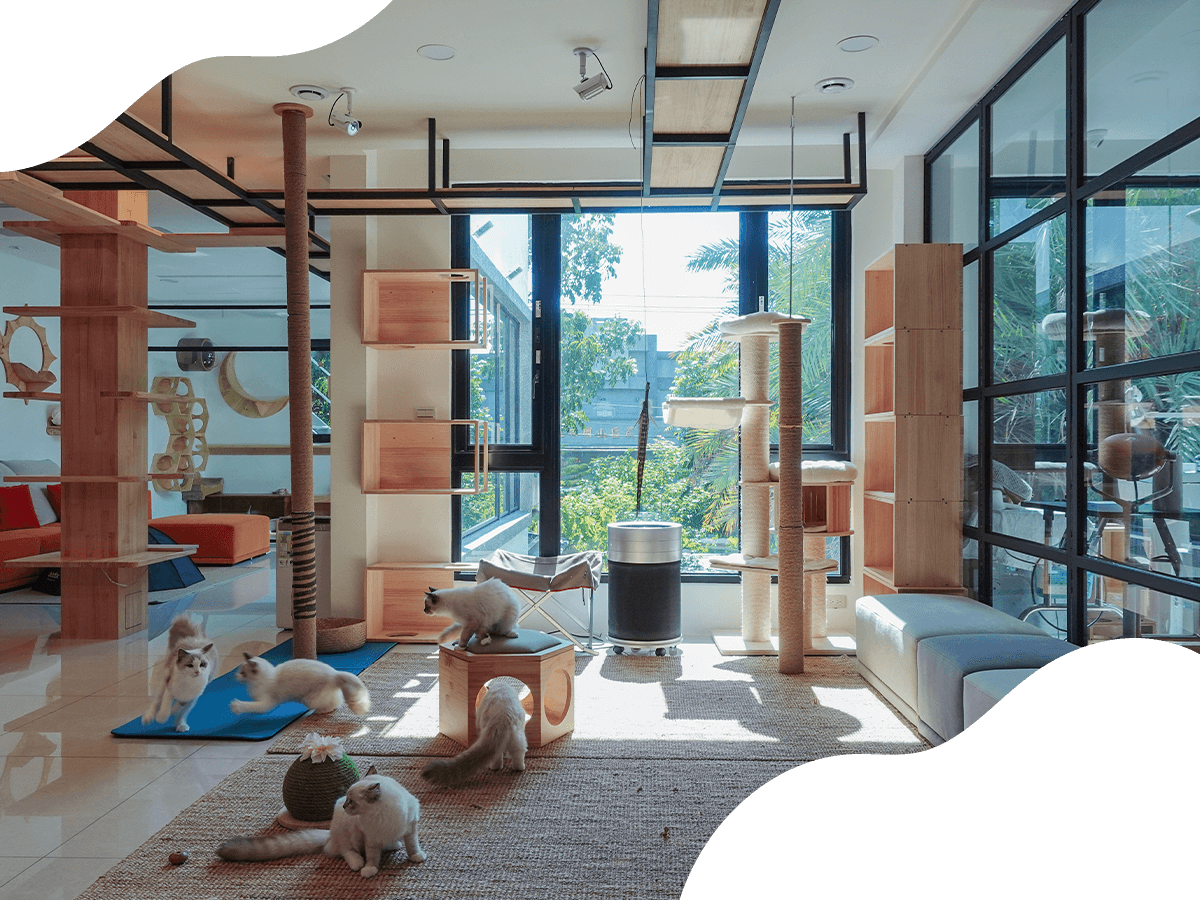 我們貓舍24小時冷氣以及換氣系統,搭配每個貓房配備空氣清淨機除濕機,為貓貓們打造舒適的環境。
