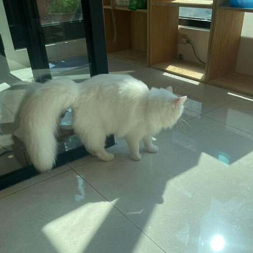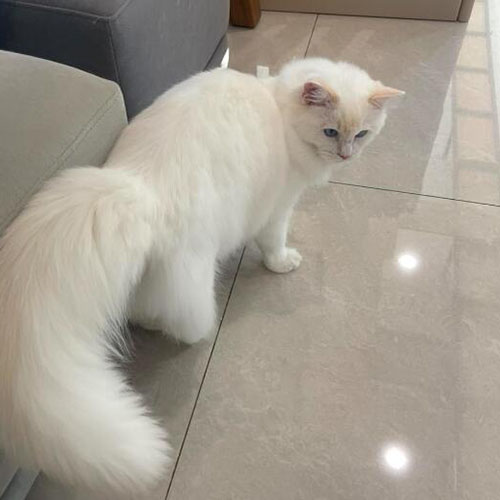 1.體型中等至大,擁有如絲般滑順的中長毛髮、大而亮麗的藍色眼睛,使其看起來格外引人注目。