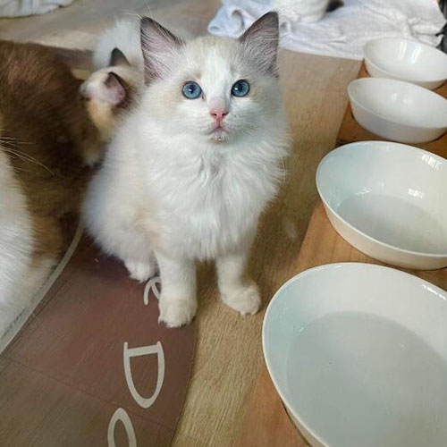 目前亞果有在培育的台北、台中布偶貓有海豹、藍色、三色(奶油 藍色 白色三種)。若您要帶自家的毛孩來訪,請配合攜帶寵物合格及安全提籠,將您的毛孩放置我們的安全處,並請配合更換拖鞋、進貓屋前穿戴無塵鞋套及全身消毒。